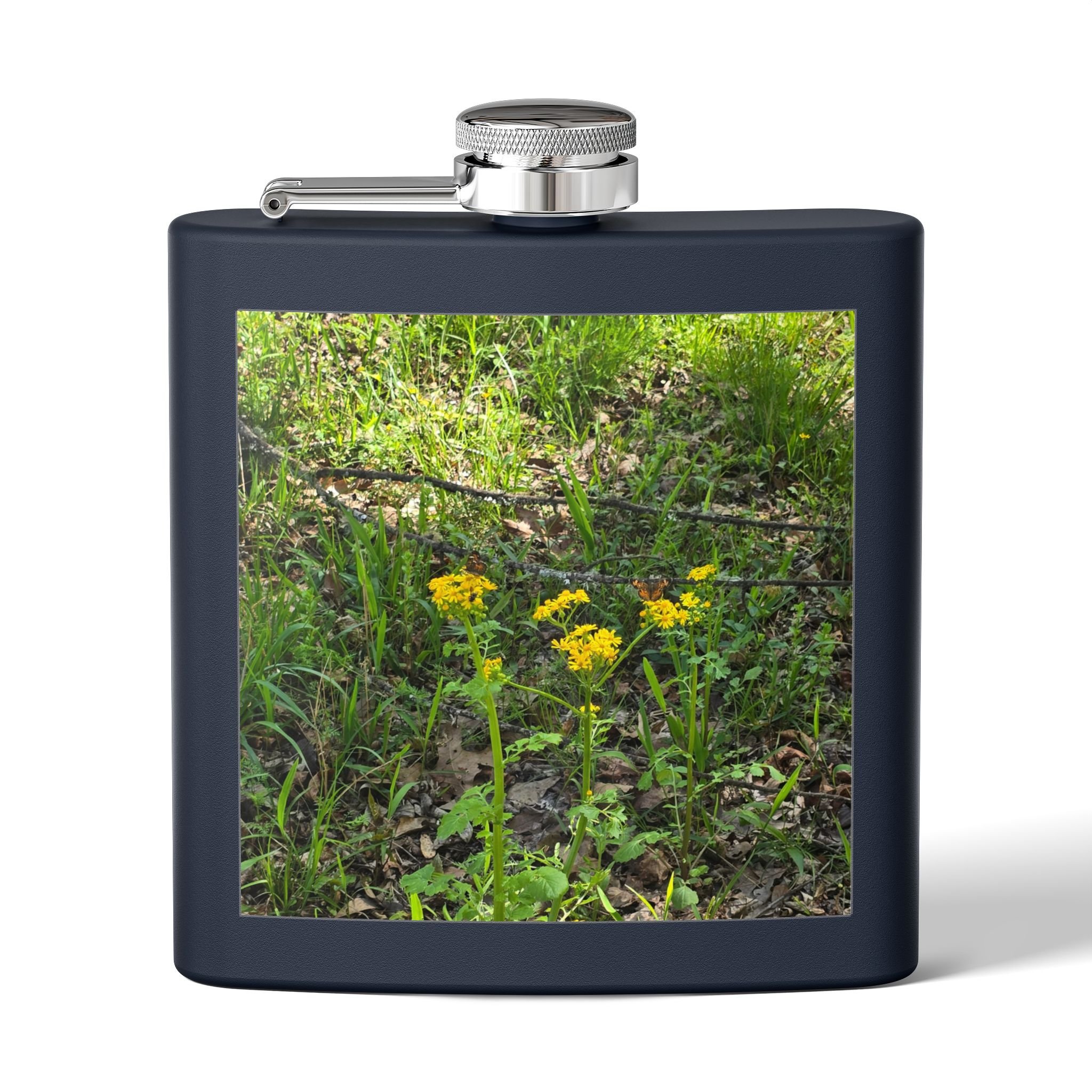 Flask — Yellow Wildflower Photo Stainless Steel Hip Flask (6oz)