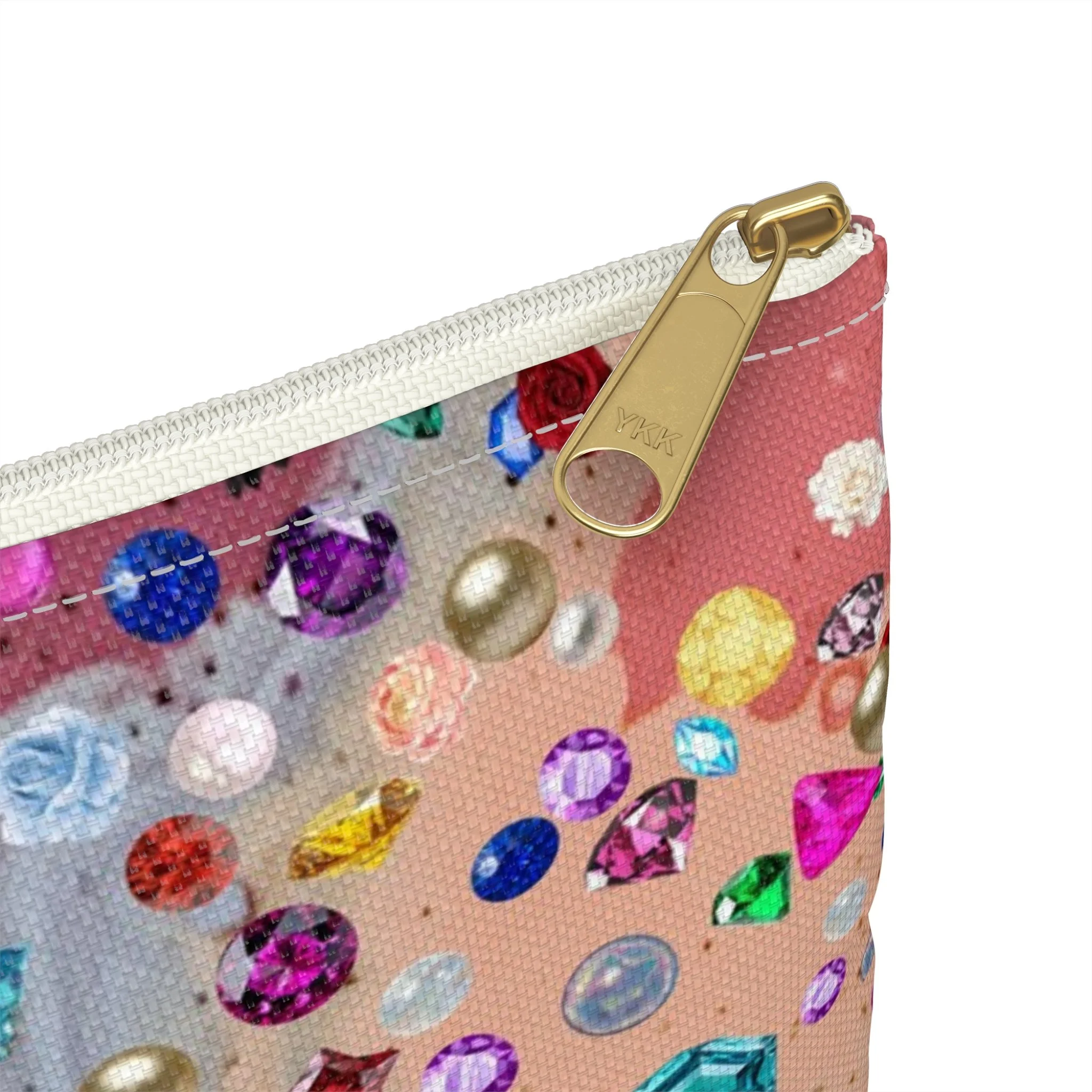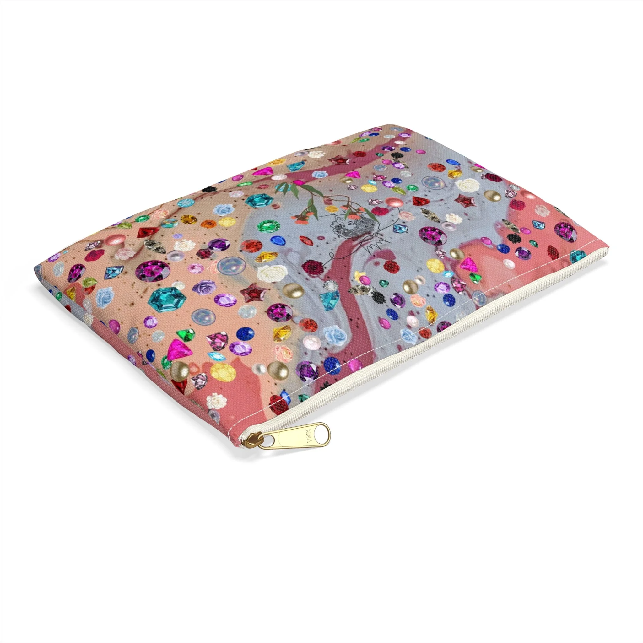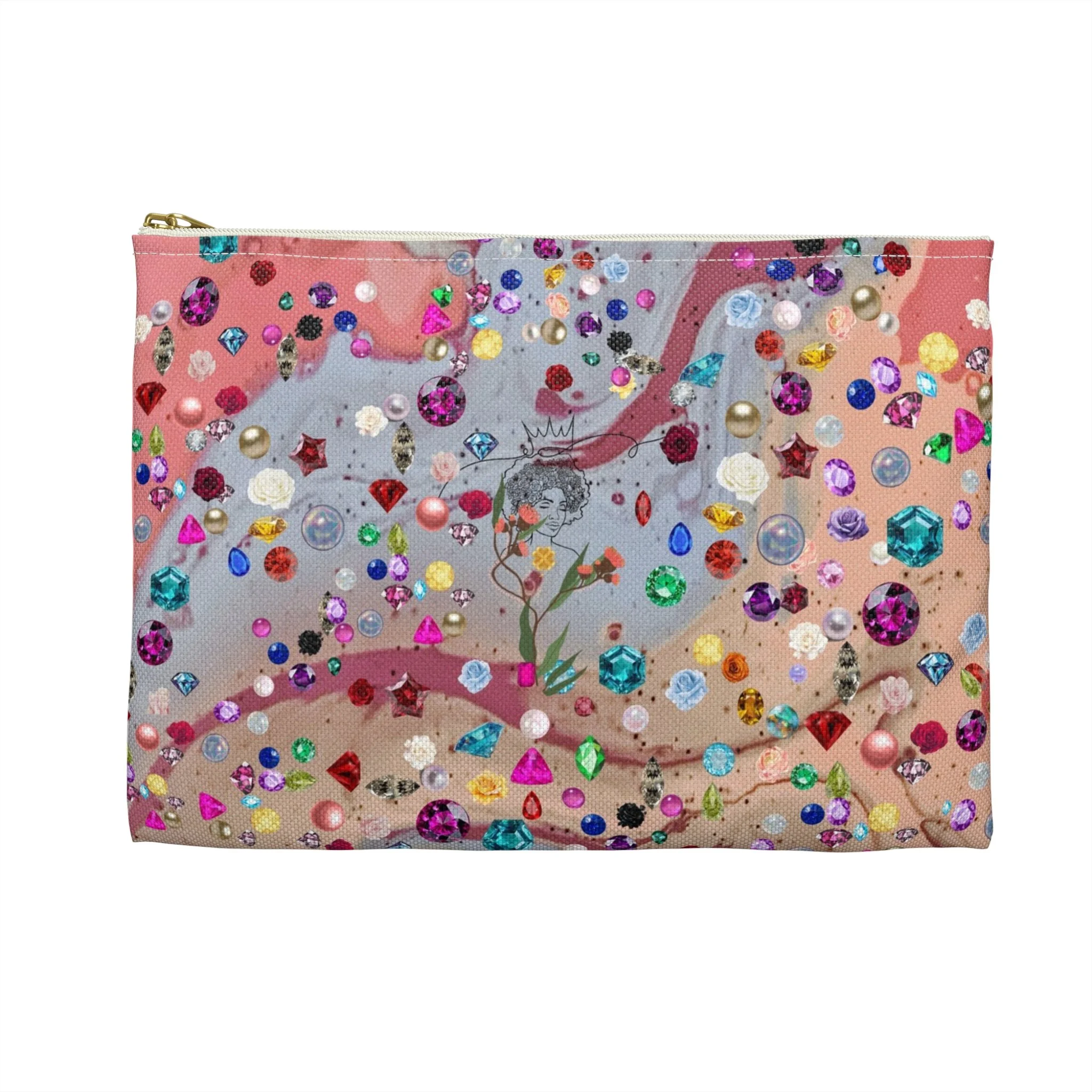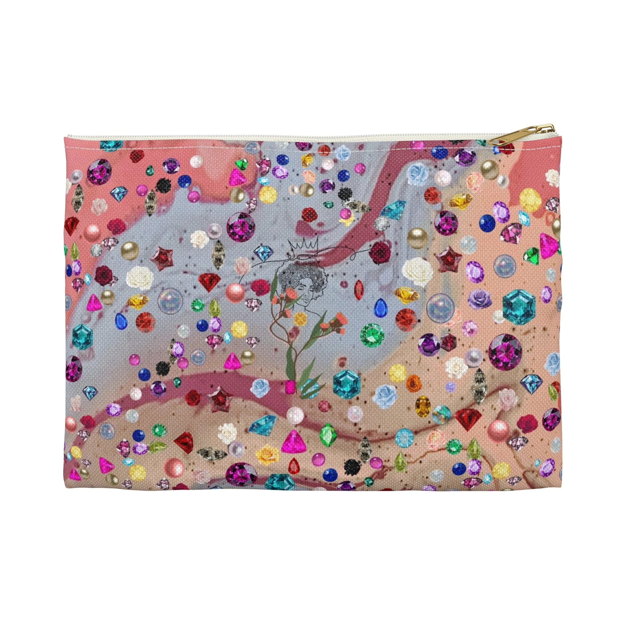 Jeweled Queen Accessory Pouch — Sparkling Gemstone Zipper Bag