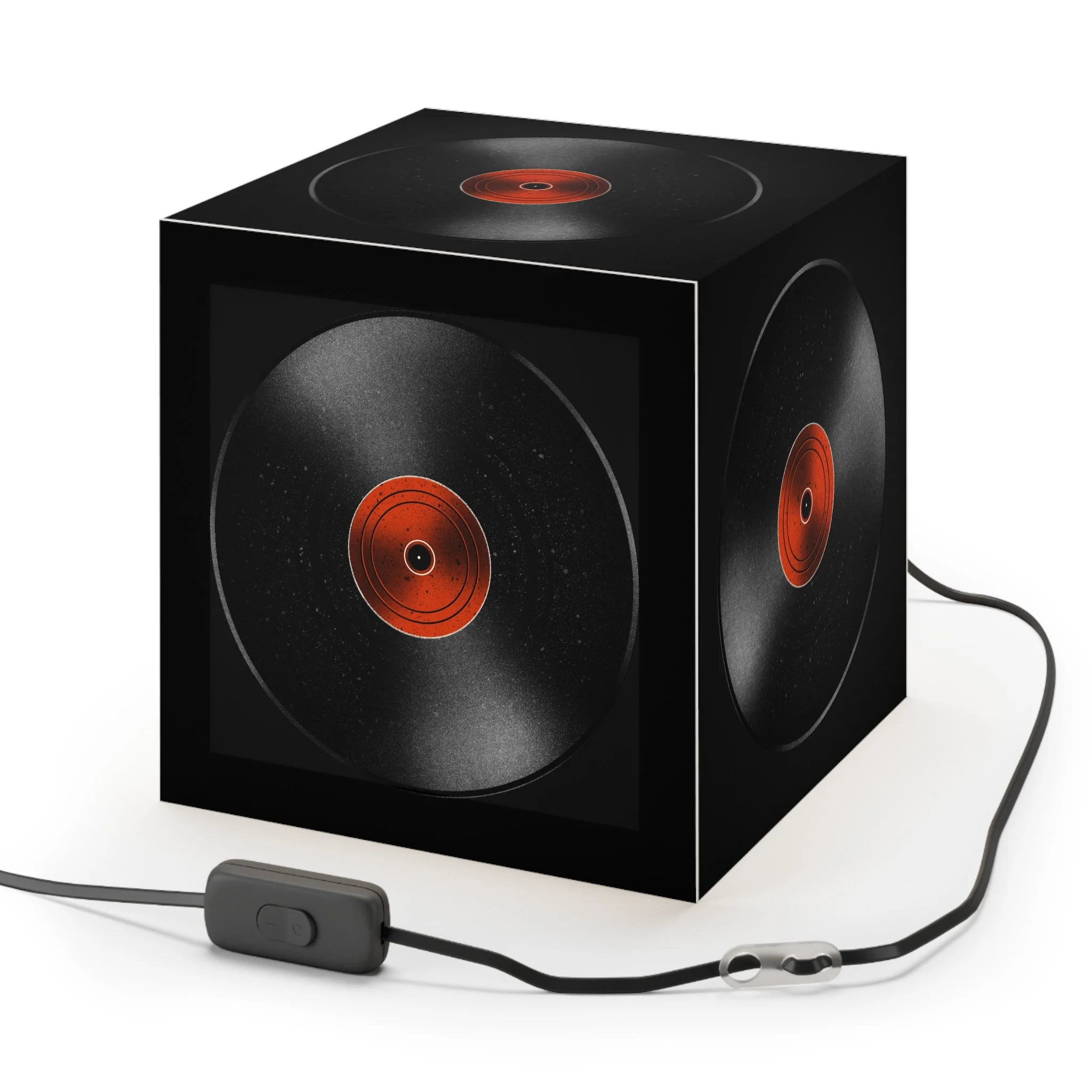 This cube lamp brings warm, low-key ambiance to music rooms, dens, or any corner that thrives on vinyl nostalgia. Printed on matte-coated polyester film, each face shows a vinyl record with a deep black groove and a glowing red label—subtle textures and vibrant inks keep the image crisp even when the light is turned on. Hang it as a pendant or use the standard plug cord as a floor or desk lamp to wash the space in relaxing, cozy light. Lightweight and resilient, the lamp casts soft, even illumination that highlights album sleeves, late-night listening sessions, and intimate gatherings without stealing the show. Thoughtful details—two size options, EU/US plug choices, and a pendant-ready cord—make it easy to integrate into a home studio, listening nook, or retro-themed living room.